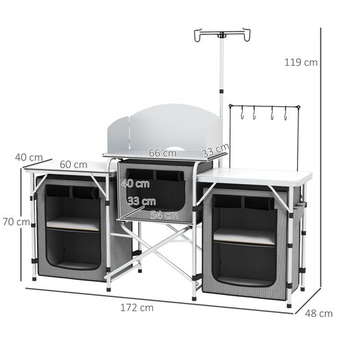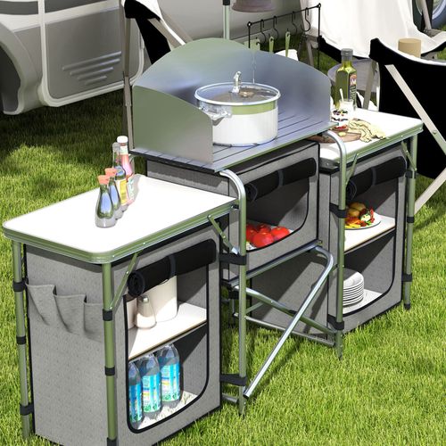 Outsunny Portable Folding Camping Kitchen with Windshield Light Stand Carry Bag
